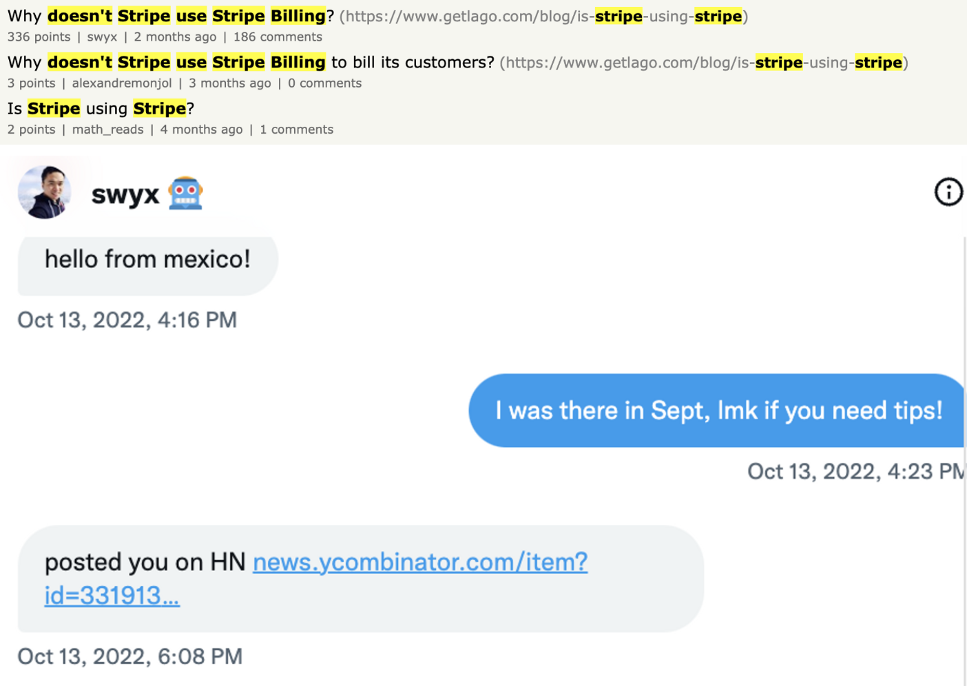 - For those who knew “Stripe Billing”, they didn’t get how Lago was different. We scratched our heads around a creative angle, and found one we really liked. If you were to have a pricing similar to “Stripe Payments” ($0.30 per transaction + 2.9%), you couldn’t use “Stripe Billing” to implement this (without many workarounds).